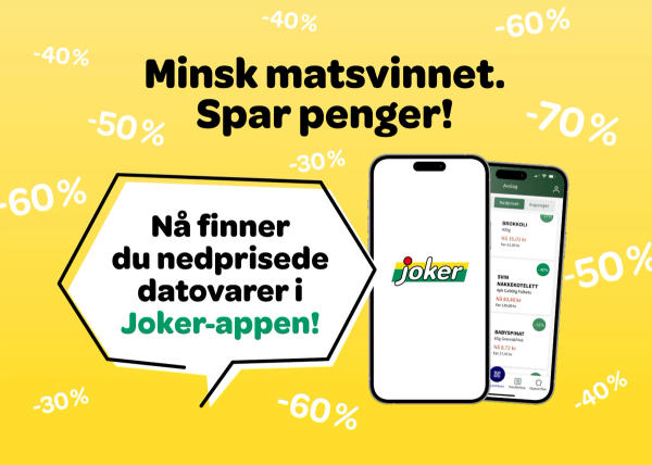 Minsk matsvinn og spar penger – Se hvilke varer som er nedpriset i Joker-appen.