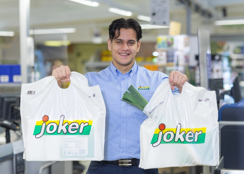 I mars vil de første kundene se våre nye plastposer i Joker-butikkene. Posene vil merkes med en kort tekst over logoen, og under håndtaket: «Denne posen er laget av 80 % resirkulert plast».