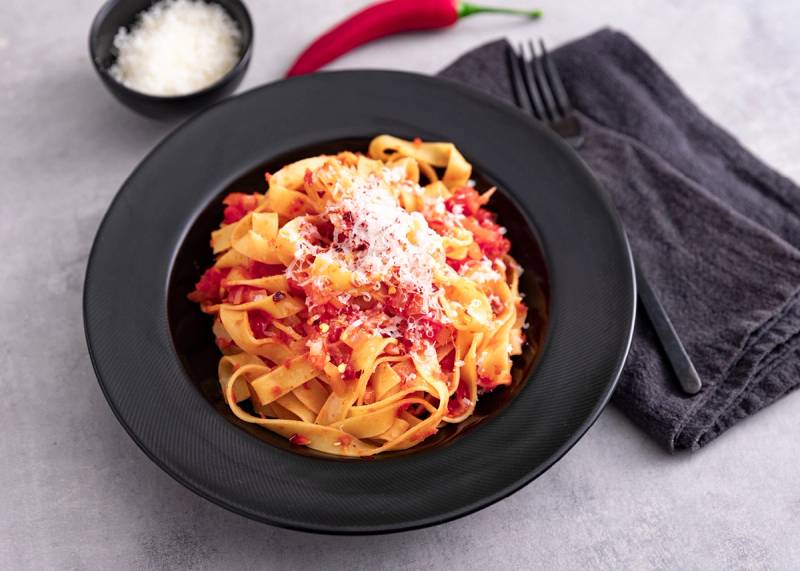 Her på nettsidene våre er det alltid lett å finne oppskriften på suksess. Også når det kommer til sterk og krydret mat. Et godt eksempel på dette er vår Tagliatelle Arrabiata. For som det står å lese i introen til denne oppskriften, så betyr «Arrabiata» bokstavelig talt «sint» på italiensk – og det er også navnet på denne tomatbaserte sausen med chili. Den er enkel å lage og har akkurat passe kick. Og ønsker du å lage den enda sterkere for virkelig å markere den internasjonale sterk og krydret mat-dagen kan du tilsette mer chili eller chiliflakes ved servering.