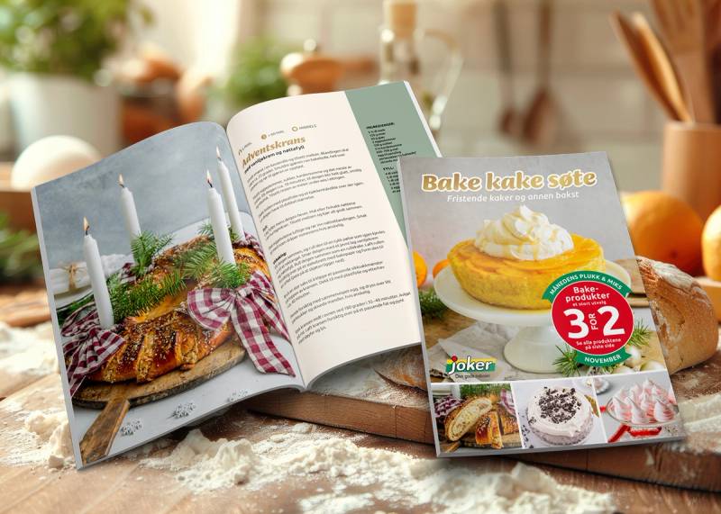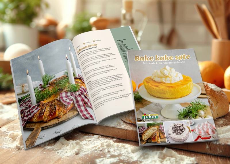 «Bake kake søte» er navnet på vårt innholdsrike bakehefte. Her finner du 60 sider med oppskrifter på fristende kaker og annen bakst.