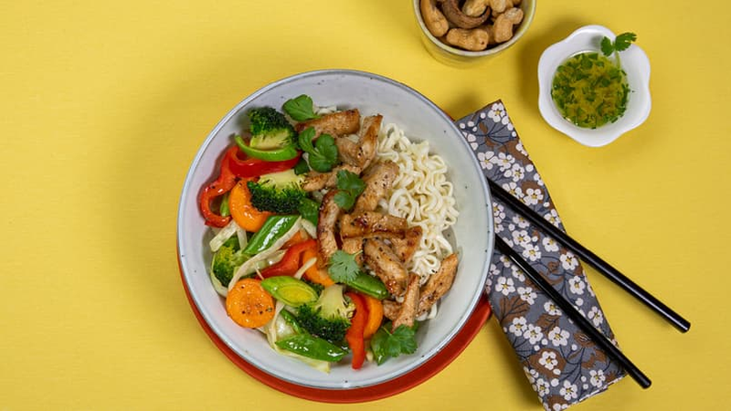 20 min|EnkelNudelwok med kyllingkjøttboller