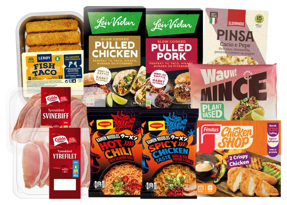 I fiskedisken hos Joker finner du nå Lerøy Fish Taco. Her kombineres norsk fisk med ekte meksikanske smaker. Server Lerøy Fish Taco i tortillalefser med frisk topping og spicy saus. Foretrekker du kylling fremfor fisk, har Findus en knasende god nyhet; Findus Chicken Shop Crispy Chicken er sammensatte stykker av kyllingbryst som er panert og krydret for en sprø utside og saftig kjerne. Produktet får en gyllen og crispy overflate, samtidig som kjøttet holder seg mørt. Crispy Chicken passer godt som en rask og proteinrik middag, enten servert med pommes frites og salat, i burgerbrød eller i wraps. Det er en enkel løsning når du vil ha et skikkelig måltid som smaker godt, uten å bruke mye tid på kjøkkenet.