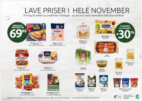 Med Godt til middag november får du middagsprodukter som kyllingfilet, scampi, italienske kjøttboller og Fish & Crisp til kun 69,90 pr. pk.