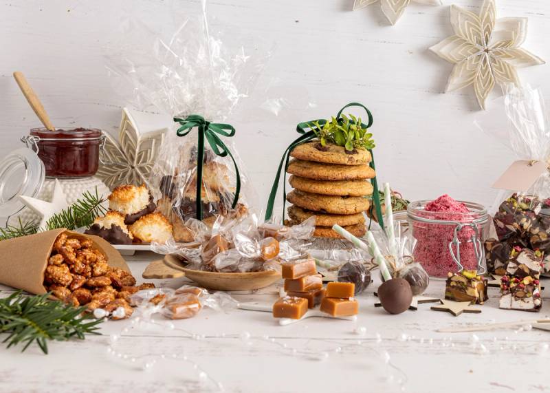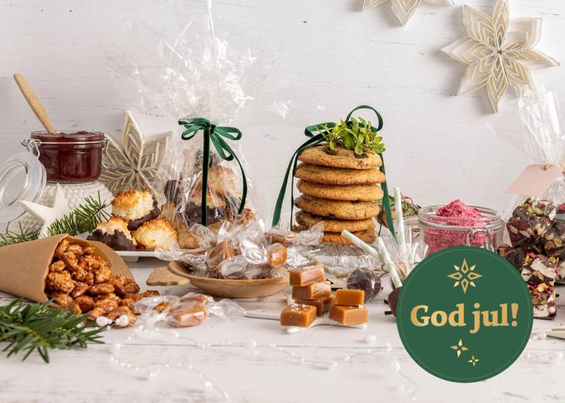 Lag herlige delikatesser som kokosmakroner dyppet i deilig sjokolade, fargerikt tyttebærsalt, hjemmelaget plommechutney, brente mandler eller myke karameller?
