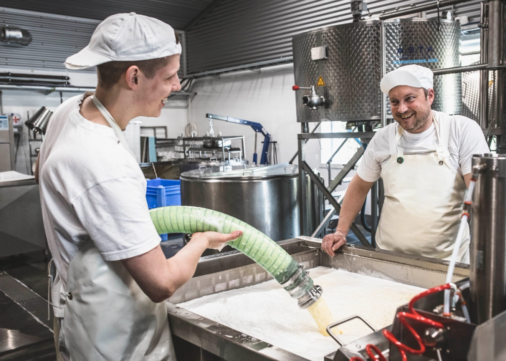 Yngve og Olav både eier og driver ysteriet sammen i tospann. Sammen har de investert i flotte, nye produksjonslokaler på gården.